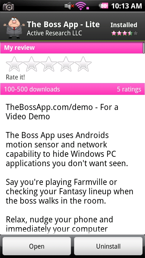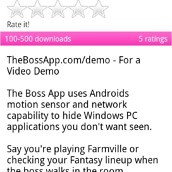 The Boss App: (lite and $4.99) Have an anal boss who is constantly looking over your shoulder? This app helps you hide anything incriminating on your PC with a little wiggle.