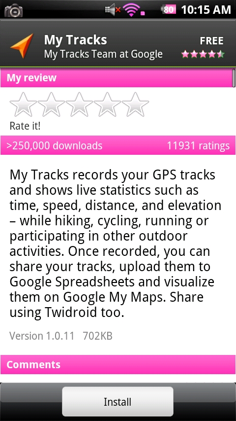 My Tracks: (free) This app is pretty fantastic. From the Google team itself, this app works with Google Maps and allows you to trace your latest hiking or biking adventure and then share it with the world. Win!