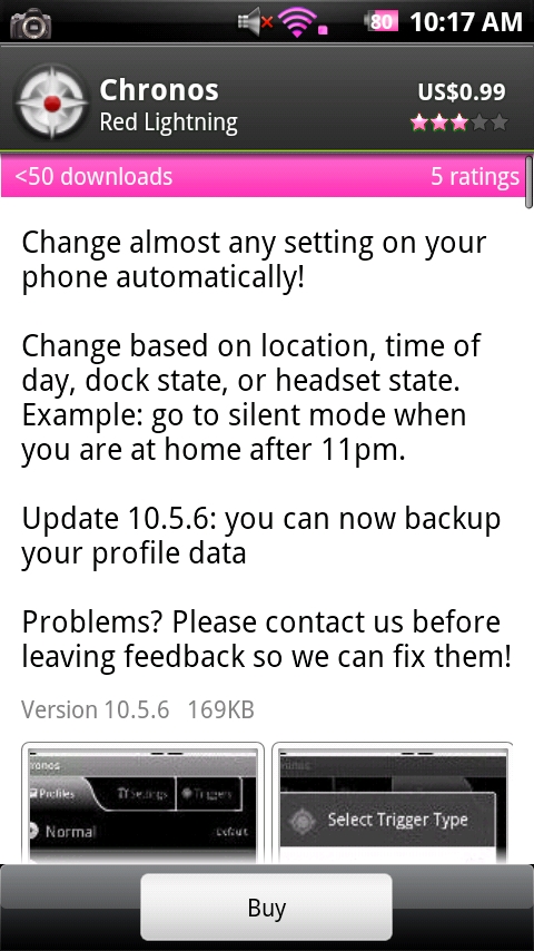 Chronos: ($0.99) Similar to Locale and SettingProfiles, this new location-based app looks very promising. In fact, it compiles many of the features from other location apps into one place.