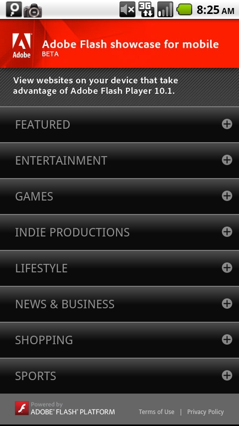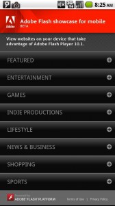 Guess what? Adobe already has us covered. They’ve released the Adobe Flash Showcase which gives you a listing of the top mobile Flash enhanced sites so that you can take full advantage of your new toy.