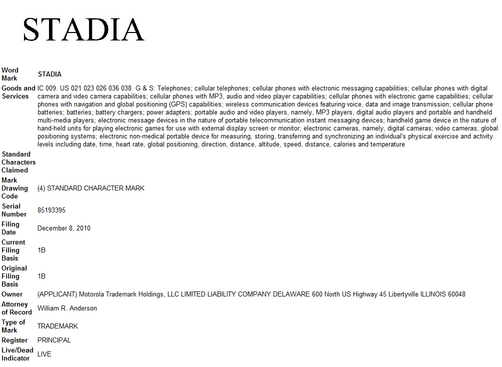 Motorola has filed for a trademark of the word “Stadia” which came as a pretty big surprise to us initially, until we saw the description. This new trademark, more than likely has something to do with Moto’s CEO Sanjay Jha and the remarks he keeps making about the seamless transition of media from phones to TVs and home entertainment systems. We know that Moto’s goal with their upcoming Tegra 2 devices (Olympus, Etna and Everest) is to make an all-in-one multi-media device with extra gaming capabilities and “Stadia” might be the name for those plans.