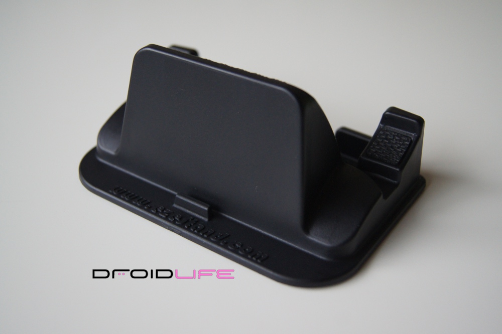 This new version was made specifically for all those big devices/”hummers” out there, like our friend the DROID X and the HTC EVO. The base has been widened and will fit any phone in portrait measuring in at 2.85″ which is pretty impressive. In fact, with my DX docked, I’ve easily got another .5″ of breathing room, so I would have no issue even if I slapped a case on it.