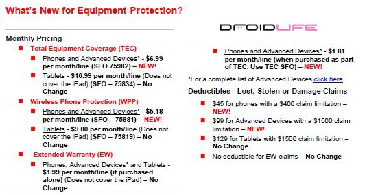 Verizon is apparently on quite the policy changing mission these days. First we had news of their upgrade policy, then it was return changes, rebate removals, and now this. As of February 1st, equipment protection plans will be changing and in a good way from what we’re seeing. Total Equipment Coveage (TEC) will be dropping from $7.99 down to $6.99, plus Wireless Phone Protection (WPP) will now be $5.18, which is down from $6.00. Their tablet plans appear to be unchanged even with the Motorola XOOM on the way, but for those of us looking to grab a Thunderbolt, this is good news.