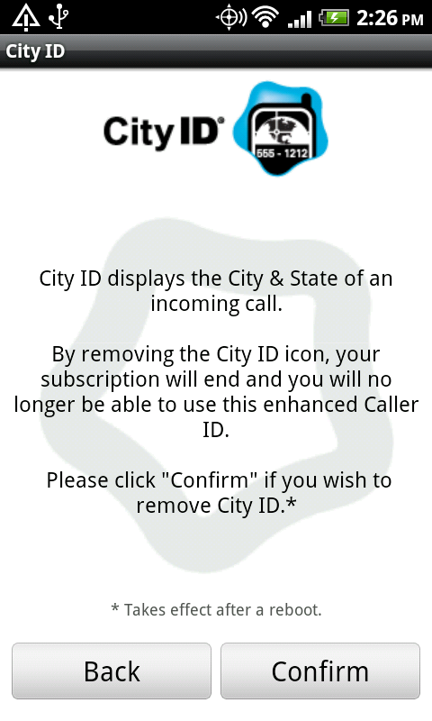 I don’t know how long City ID has been allowing this to go on, but today when notified that my trial of their service was over, I was able to uninstall it. Yes, you read that correctly. City ID, known for their notification annoyances on phones like the DROID Incredible, is no longer on my Thunderbolt.
