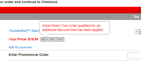 If replacement/backup batteries for your HTC Thunderbolt were something of interest to you then heading over to Verizon’s accessory site immediately would be a good idea. The official OEM standard battery can be had for $19.99 after a mysterious “additional discount” has been automatically applied by their checkout system. So yeah, you don’t need a coupon code or anything special. All you have to do is add the $39.99 standard battery to your cart and once you check out it should show up as $19.99.