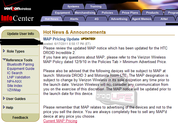 It looks like the Motorola XOOM with 4G LTE (aka the Motorola XOOM LTE) is about ready to launch, along with the DROID3. Both devices have been added to Verizon’s MAP (minimum advertised price) list, which is one of the better indicators that a device is about to be released. There is no telling if this is the mystery device that we first spotted from a VZW tablet commercial last week or just the same ol’ XOOM with an LTE radio in it. We’re going with the latter. Oh, and this is a pretty good sign that we should be hearing from Motorola about sending in our current non-4G XOOMs for upgrades. (/Fingers crossed.)