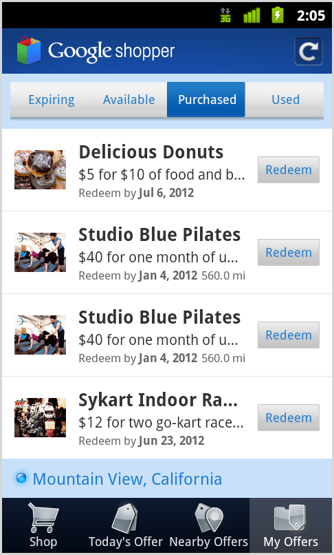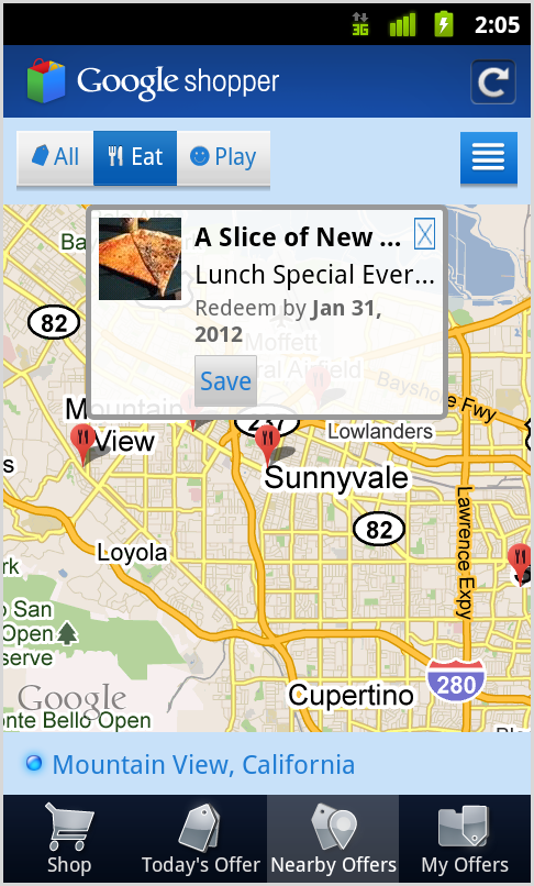 I’m not exactly sure how popular of an app Google Shopper is, but Google is certainly doing its best to make sure you at least give it a quick glance to see if it can help save you money. The app received a pretty polished update today which includes its Google Offers program (for select cities, plus NYC as of today), “nearby” deals, and a list of the deals that you have saved for later. I would assume that this will probably work best for folks in major cities, but hey, why not give it a shot to see it can help save you some hard-earned cash?
