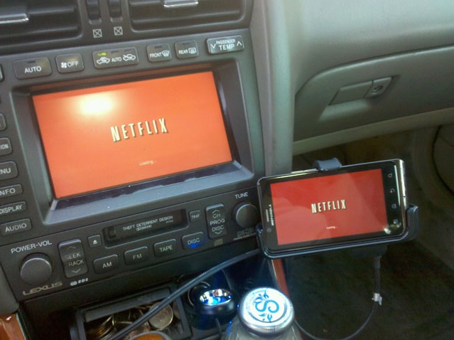 A crafty DL reader with a new DROID Bionic and car dock decided he wanted webtop and Netflix from anywhere. So what did he do? Hacked the s.o.b. to work through his car’s entertainment system. He now has webtop and HDMI mirroring throughout his entire car. Sure it took some epoxy, an HDMI cable and a drill, but I’d say it was well worth the effort.