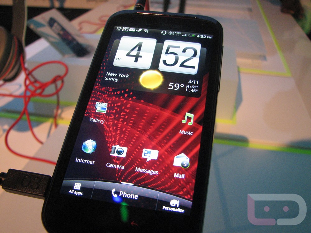HTC and Verizon made the Rezound official just moments ago, and we had a chance to go hands-on with it for a few minutes. The big beautiful 4.3″ HD screen (Super LCD according to the official specs) is the star along with those sharp red accents and Beats by Dre logos. It matches up closely to the thickness of the DROIDX, if not slightly thicker, but isn’t thick by any means. Tough to tell what the battery life will be like with the 1620mAh battery and if the built-in Beats audio enhancements will live up to the buzz – so far though, this looks like another great addition to the Verizon 4G LTE family.