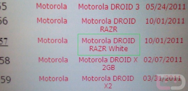 Could we see a white version of the DROID RAZR in the coming months? According to this shot from Verizon, one has at least been entered into their device management system. We have seen all white phones from Samsung, HTC and LG, but this is sort of new territory for Motorola. Sure they had partially white phones with the DROID 2 Global and the R2-D2, but we are imagining white all over this slender beast. Sort of odd to see this version loaded into the system at the same time as the regular RAZR, but that could mean a variety of things.