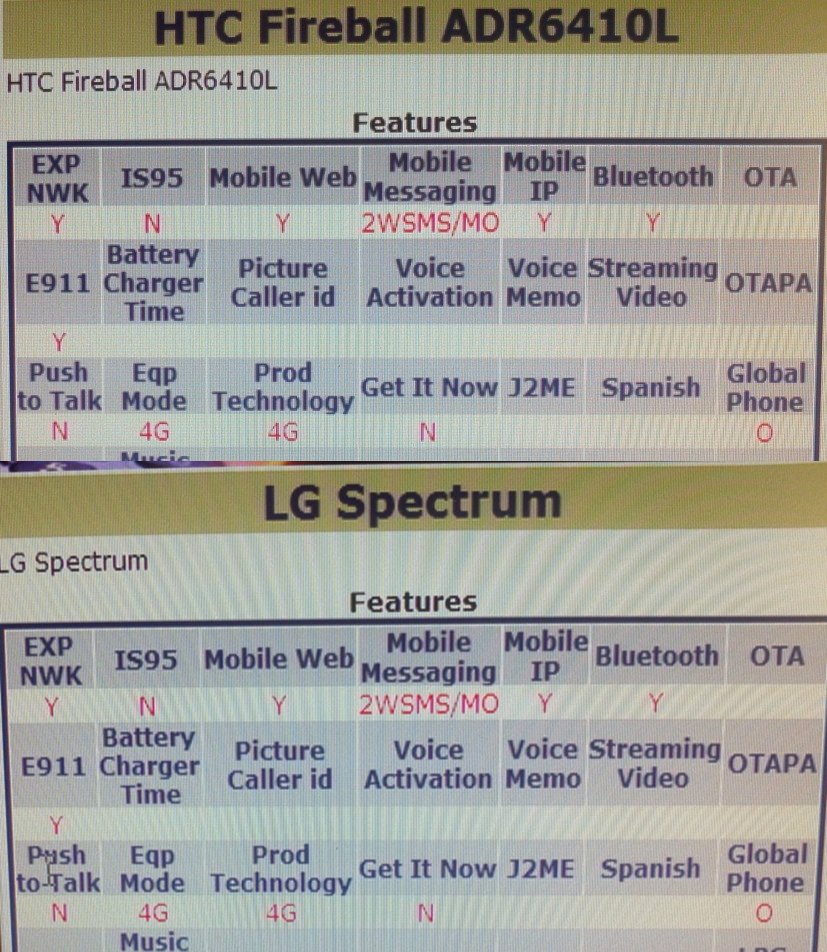What else do we know about the Spectrum and Fireball? Well, not much when it comes to the Fireball. This phone just jumped onto our radar within the last week, and the only real thing we have to go on is the model number of ADR6410. The Thunderbolt was AD6400 and the Rezound is ADR6425, so that would lead us to believe that it will fall somewhere in between them spec-wise. Is this the true replacement for the Thunderbolt? Could the “10” in 6410 mean keyboard? Tough to tell.
