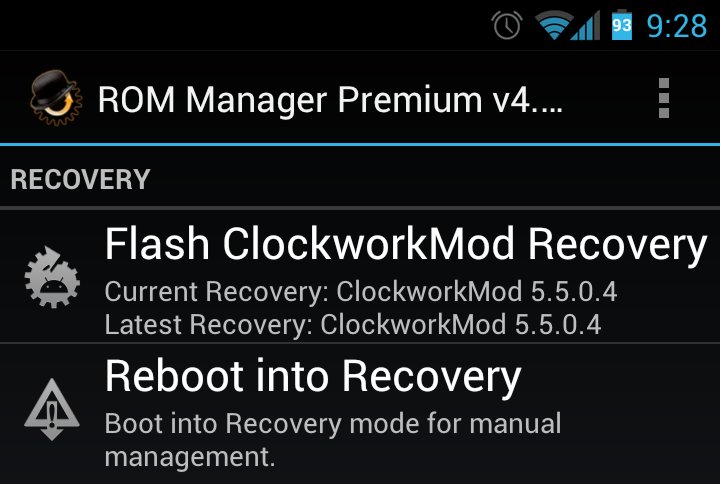*If you did not flash a “permanent recovery” you will need to open ROM Manager and flash Clockwork Recovery before rebooting into recovery.