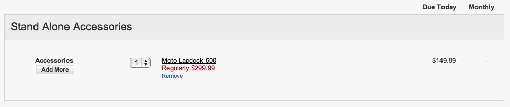 Most people can’t justify spending $300+ for Motorola’s LapDock 500. It’s a device and feature that has potential, but until Motorola adds some polish, that price may not be worth it. But what if you could score one for $149? Would that be worth it? If you game Verizon’s accessory system a tad, you can have it for that price today. The instructions below will walk you how to purchase the accessory by choosing the DROID 4, but according to Motorola, the RAZR and RAZR MAXX are also compatible with it.
