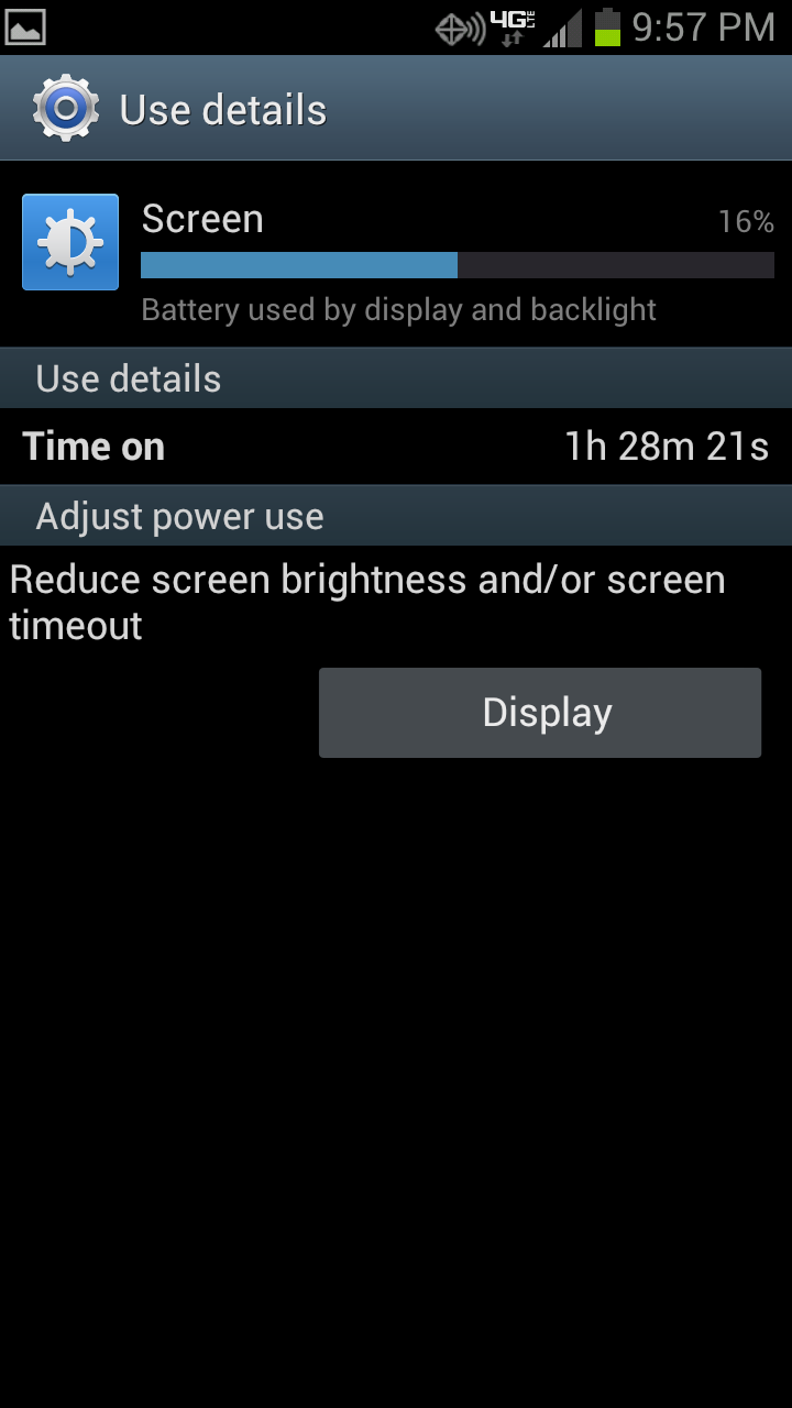 As you can see from my two screenshots (the first being day 1), I was able to get through each day without having to slap this sucker on a charger. While I would never consider myself the ultimate power user, I did force myself to do almost all of my email checking and text responding from my phone over the last couple of days. I made 2 or 3 30-minute calls yesterday, hammered out most of my internet browsing, and of course, tweaked as many settings as I could throughout as I was trying to find a way to turn off 4G. And speaking of 4G LTE, it was left on the entire time, with no WiFi usage until I took these screenshots.