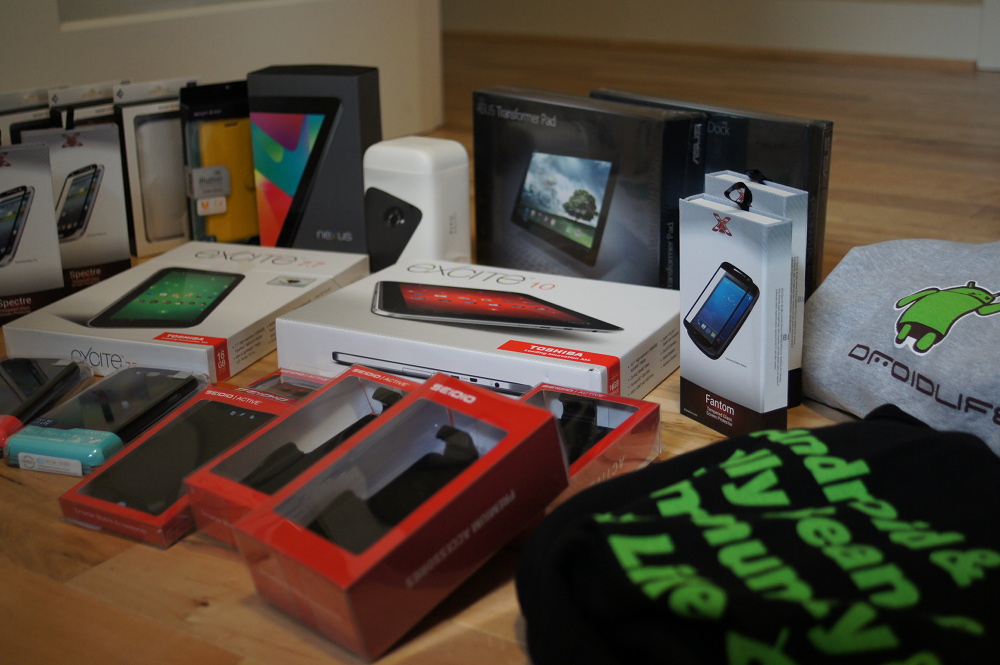 So yeah, this is Reader Appreciation Week, a 5-day bonanza of Android-related giveaways. Last year, we handed out 3 tablets, a bunch of apps, some DL swag, Android collectibles, and a case here and there. It was a blast. But you know what? This is year 2, so we turned it up another notch. In fact, we turned it up a couple of notches. The Droid Life community has a chance to walk away with 5 different Tegra 3 powered devices (4 tablets and 1 phone) from NVIDIA, more cases from Spigen and Seidio than you can count, XGEAR tempered glass protectors, exclusive DL hoodies and t-shirts, and so much more. The photo above doesn’t even include it all and is more a less a sampling of the stuff sitting around my office. It’s going to be wild!