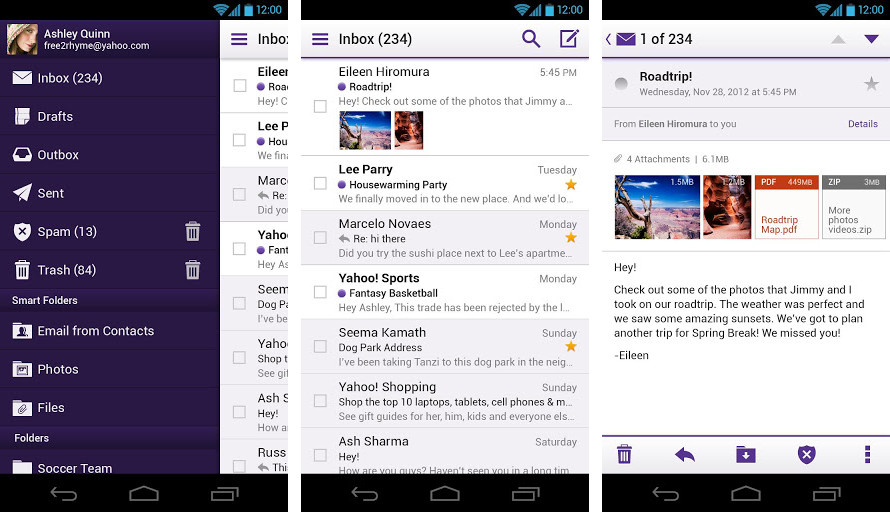 As you can see in the new Android version, they took a number of ideas from the Android design guidelines. It’s close to being Holo theme, plus we have a slideout panel from the left side to quickly get you into folders or categories. The app also has a pull-to-refresh and a quick-to-access action bar at the bottom. It looks great, especially for those that still use Yahoo Mail.