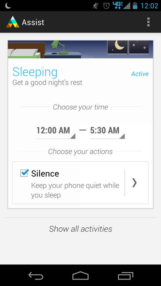 Assist is probably the least talked about of the bunch, but is equally as important for those who travel a lot, regularly fill up calendars and need quiet time, or simply like to sleep at night without getting bothered. Assist is an app that when activated, gives you three categories to choose from: Sleeping, Driving, and Meeting. In a way, they are like profiles that set your phone to a certain state depending upon your needs. If you are driving and you have Assist turned on, the phone will recognize that you are in a car and automatically start reading text messages and incoming calls aloud. If you set it to Sleeping, you won’t be bothered by notifications between the hours you select, unless you want to set an exemption for important people. In Meeting mode, your phone will silence itself based upon your calendar status, and even auto-respond to calls with a pre-set text message.