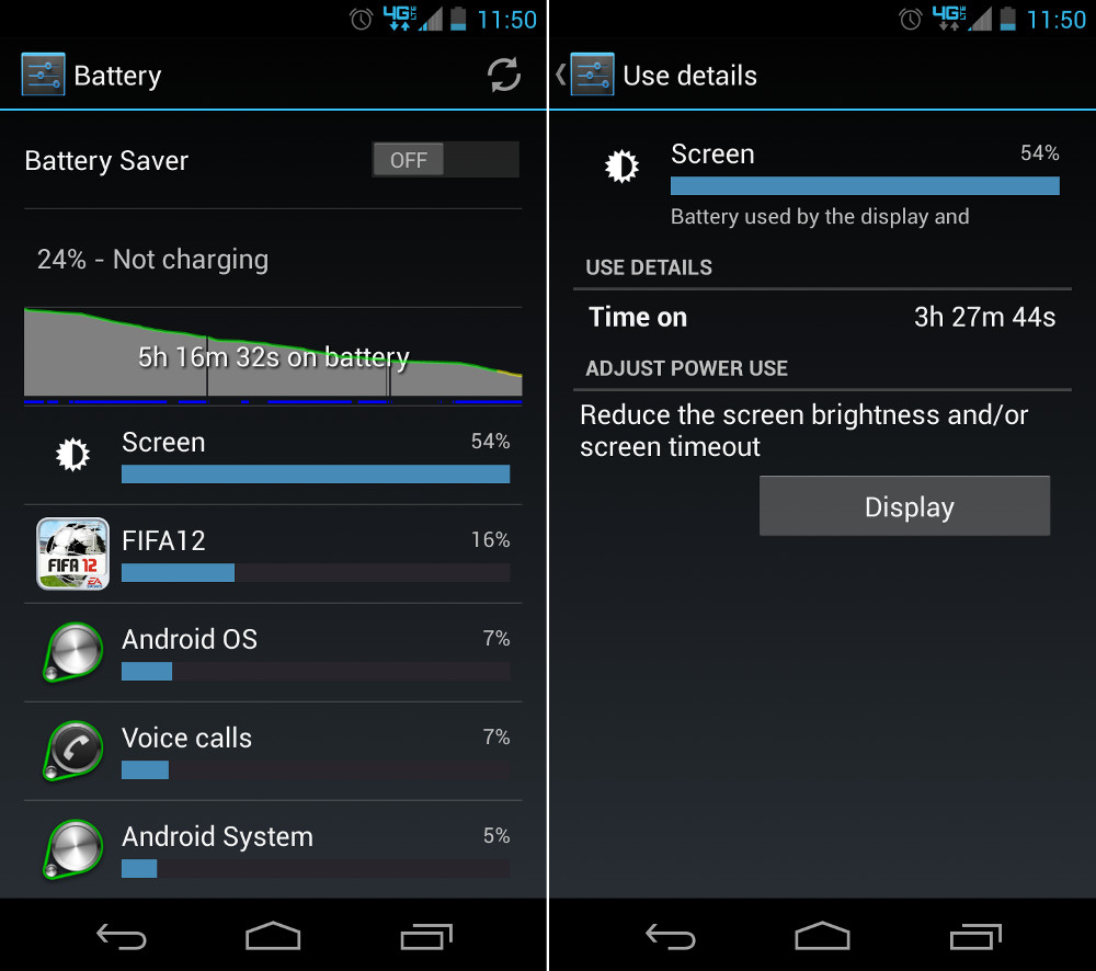 On my first charge out of the box, with an hour or so of setup and general tinkering since it was still a fresh new toy, I was able to get through over 10 hours with some room to spare. My screen on time was 3.5 hours. The second full charge I put the Moto X through, I hammered on it as hard as I could. We’re talking 3.5 hours of screen on time in a 5 hour period that saw me drain the phone to 24%. I was testing it all from Touchless Control, to gaming performance for an hour with a heavy title like FIFA 2012.