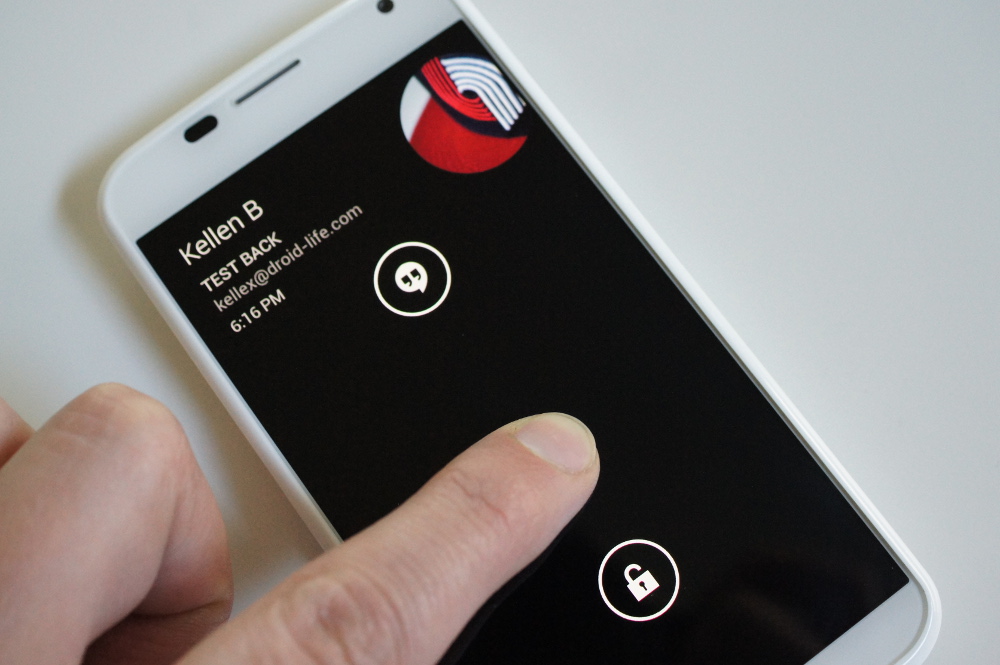 Active Display is easily my favorite feature on the Moto X. What is it, you ask? Active Display is Motorola’s new take on how notifications should be handled when your phone is in a locked state or say, in your pocket. With Active Display, your phone automatically turns a portion of its display on when you pull it out of your pants, a bag, or simply flip the device over (and sometimes even by picking it up). But don’t worry, only portions of the display are active, so this doesn’t drain your battery like you may think that it would. Instead, Motorola shows you the time and icons for any notifications you may have with a minimal white text on black background. To quickly access these notifications, a single touch on your display will then give you a shortcut to your most recent or a quick peak at older ones. From there, you can decide to access your most recent or unlock your entire phone so that the rest of your notifications can be checked (pictured above).