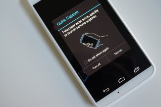 Quick Capture is another of Motorola’s highlighted features for the Moto X that you’ll probably see in commercials and as talking points any time someone from the company is showing off the phone. Motorola realized how often users pick up their phones to take pictures, so Quick Capture allows them to do this much faster. Like Active Display, Motorola is eliminating steps to make a regular action much simpler. Instead of unlocking your phone, searching for a way to access your camera, and them fumbling over a shutter button, all you have to do is perform a double-twisting action with your wrist, so that the sensors in the phone know to fire up the camera. Once the camera UI loads, a tap anywhere on the display will auto-focus and snap a picture. While it’s not exactly perfect, and often times takes a couple of twists to get it right, it can be an incredibly quick way to launch your camera once you get the hang of it.