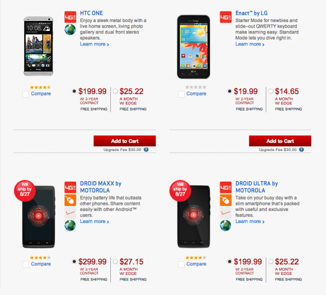 Shortly after T-Mobile (JUMP!) and AT&T (Next) revealed new upgrade-often, monthly payment plans, Verizon joined the party with Edge. We’ve already compared all three, essentially coming to the conclusion that the options from AT&T and Verizon are nothing short of rip-offs that double charge you for the same device, while T-Mobile’s is at least a somewhat fair choice. But no matter what we think, Edge (which is now live) is an option for those who want to upgrade often and also do not want to have to pay an upfront down payment. Edge will allow customers in good standing the chance to get a phone at a relatively low monthly price and zero down, other than the activation fee and first month’s payment.