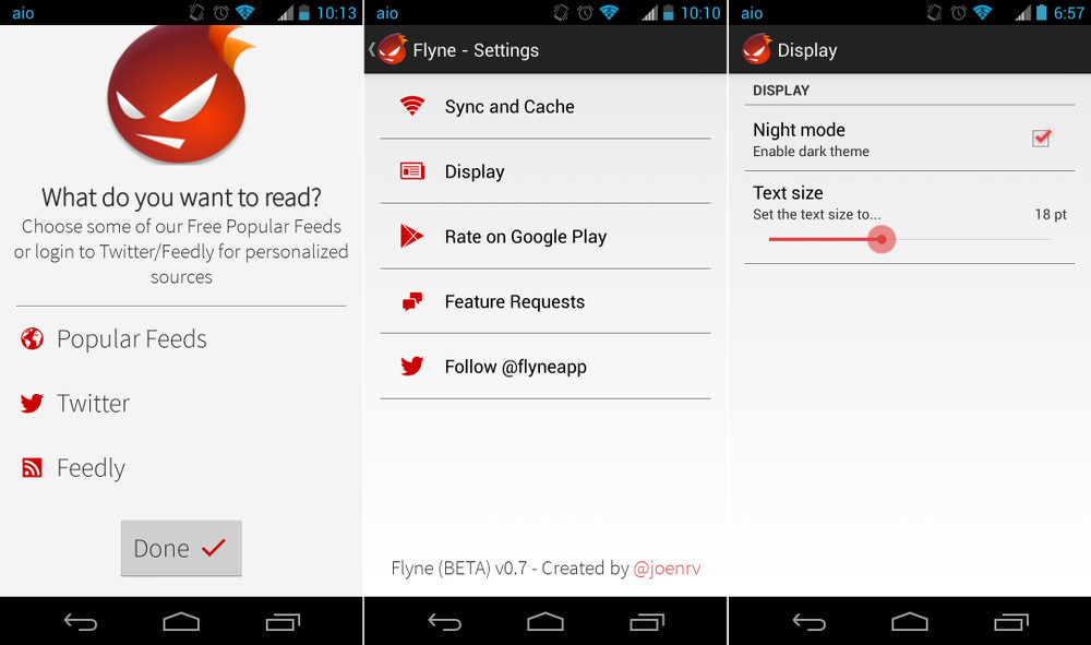 Joaquim Verges introduced his newest app last night, called Flyne. It’s a reader, more or less, but it uses Twitter to come up with stories in specially selected categories for you to read. Rather than asking for your login credentials and running into Twitter’s cap on tokens, Flyne doesn’t need anything from you other than a few selections of news categories you’d like it to present. You’ll find everything from Android to Music to Food to World news as options. Once selected, Flyne actually pulls from popular Twitter accounts in those selected categories, and then presents you with magazine-style full-feed articles. For example, in the top image you can see that the app pulled in an article from a Droid Life Tweet, but then features the entire article underneath, instead of forcing you to go to the site.