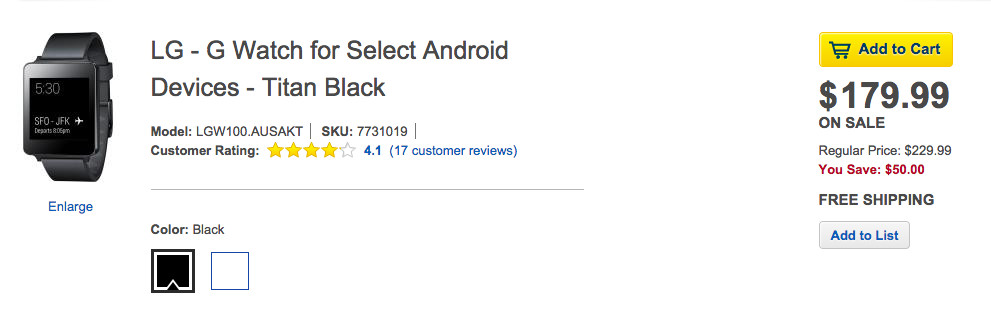Best Buy slashed the price of the LG G Watch by $50 this weekend, dropping it to $179 in either black or white. That right there, is a pretty good deal for one of the original Android Wear devices, which originally retailed for $229. In fact, it still is $229 through Google Play.