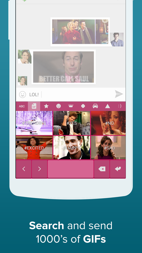 To kick it off, Fleksy introduced Extensions, which is a fancy name to call all of their new features. For starters, a GIF Keyboard has been built in, which allows you to insert GIFs in the place of text or emojis the next time you want to send a message. Not only is there a GIF Keyboard, but Fleksy has added in 14 new themes, including a few Hunger Games and Frozen themed skins. Most notably, a new Chameleon theme will change the color of the keyboard to match the application you are running.