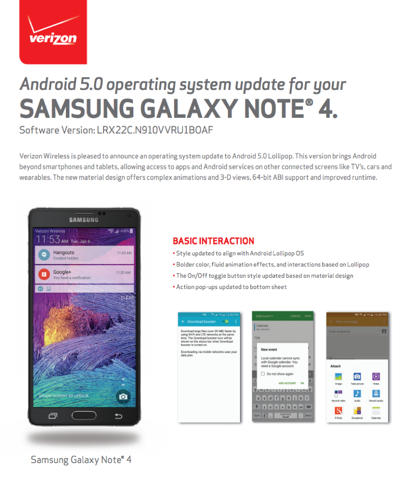 Look! A changelog of the Lollipop update for Verizon’s version of the Galaxy Note 4! It’s happening!