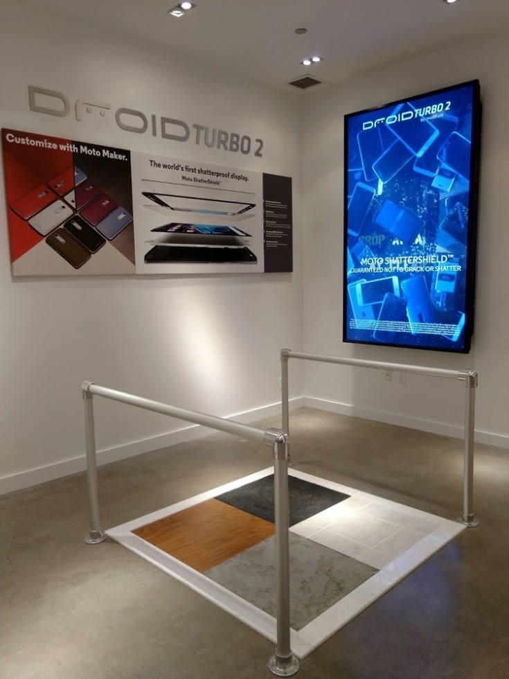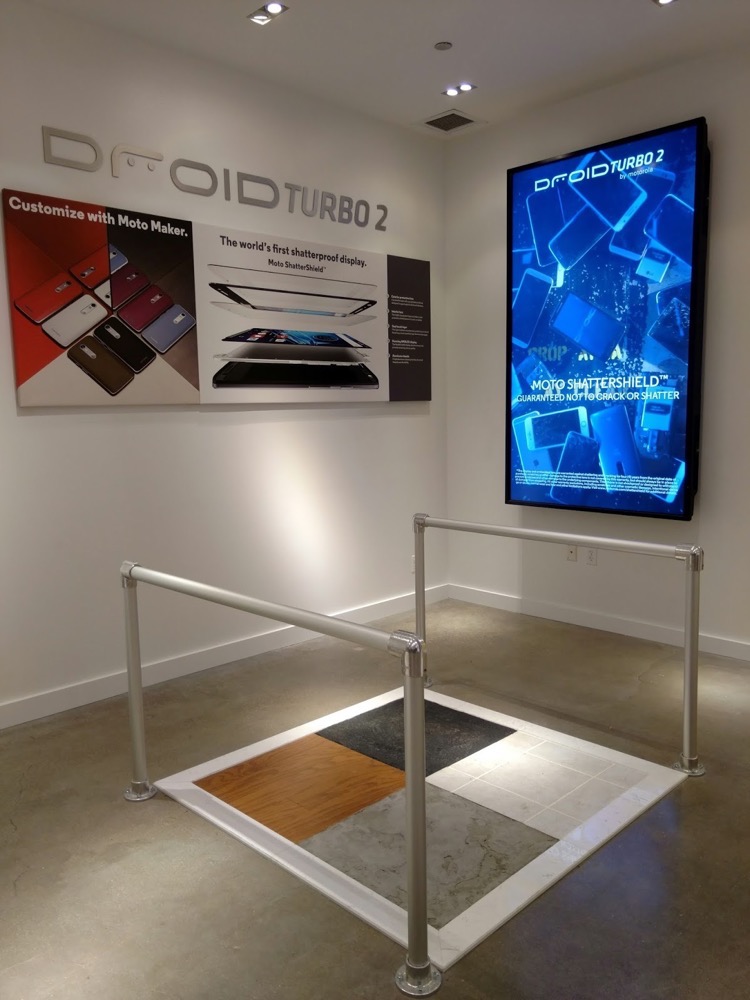Inside the shop, you will find all of Motorola’s latest gadgets and gizmos, including the Moto X Pure Edition, Moto 360 (2nd Gen), and even the new DROID Turbo 2. To help demonstrate the DROID Turbo 2’s shatterproof display, it appears Motorola will even let you drop the device on a surface of your choosing, including hardwood, tile, cement, and blacktop pavement.