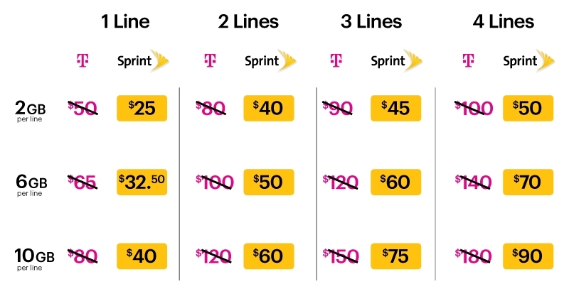 Sprint is going to cut 50% off the plans that your carrier currently offers if you port your number over to them. That includes 50% cuts on both data buckets and the monthly access/line charges. Sprint is also willing to pay up to $650 for anyone who switches, meaning they will cover your early termination fees up to $650 per line.