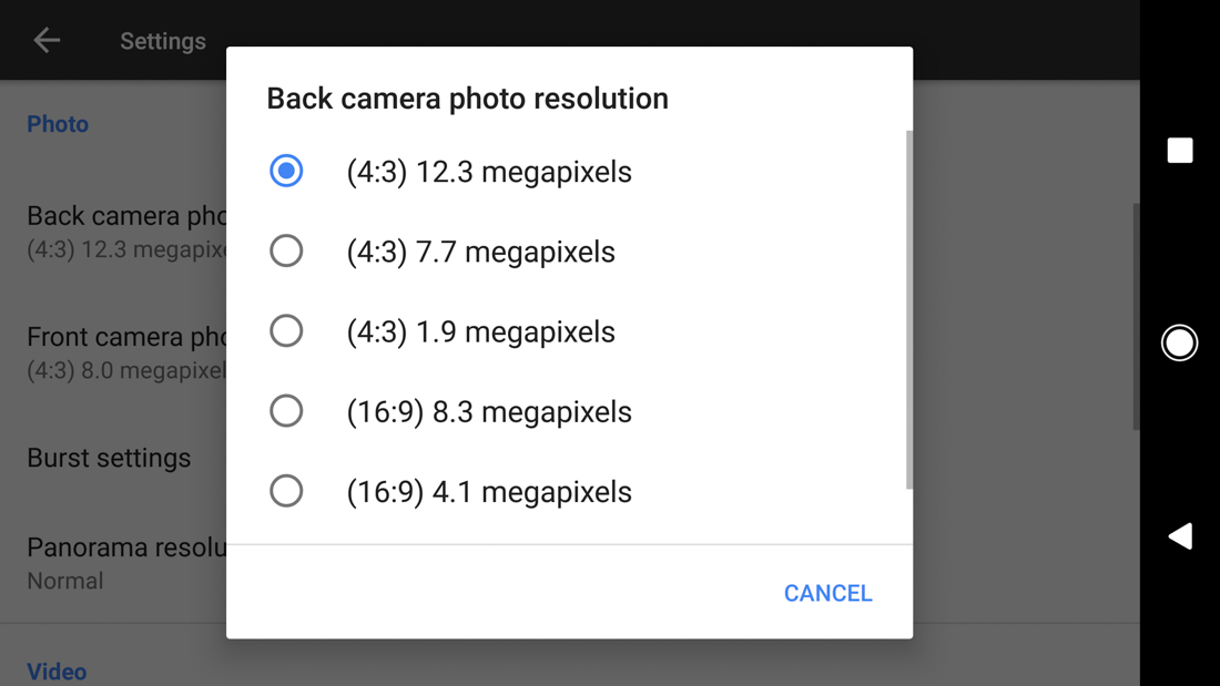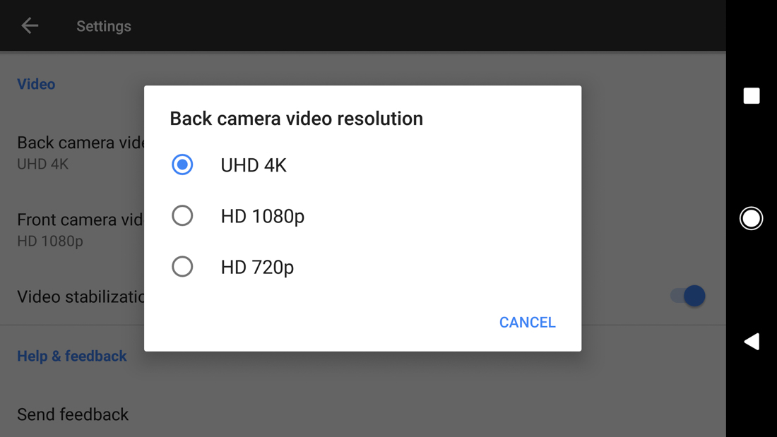 In the UI department, the newest Google Camera app is much improved. Not only do you have an easy-to-handle UI with new grid options, you also get SmartBurst, lighting scenes, HDR, Slow Motion, panorama, Photosphere, and Lens Blur, along with other settings for resolution of both photos and video. Finally, Google included a video stabilization option that will probably blow your mind, as well.