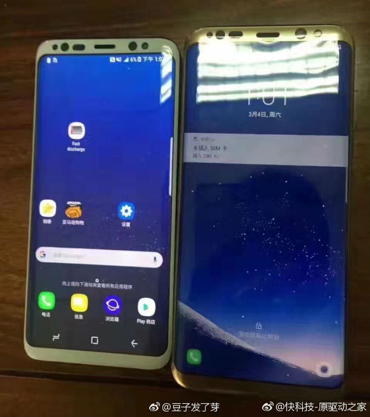 Anyway, in the latest photo posted to Weibo, we see the Galaxy S8 (left) sitting next to the Galaxy S8+ (right). It’s a shot we have seen before, but we are always happy to see new angles and colors. The S8 pictured appears to be a White model, while the S8+ looks to be Gold. It is reported that the phones will be offered in a variety of colors at launch: Black, White, Gold, Silver, Orchid, and Pearl Black. Availability will depend on which market you reside in.