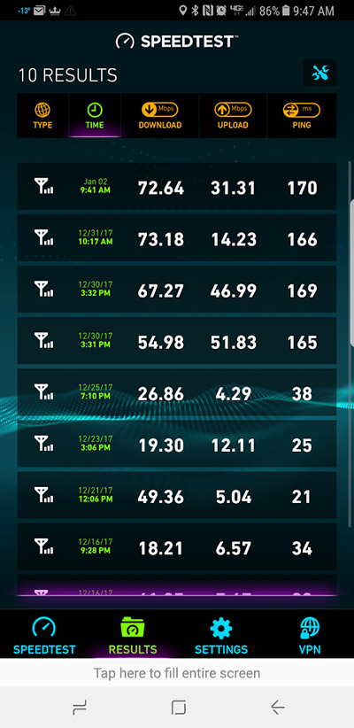 For example, a reader of ours sent in the screenshots of speed tests below from the Joliet, IL (left) and Detroit (right) areas while using a Galaxy S8+. The speed tests from Joliet really show a flip of the switch. Speeds after December 25 tripled in download speeds and provided 10x the upload speeds. That’s a pretty solid jump. The Detroit speed tests seem to show an overall download increase that isn’t typical for most of us.