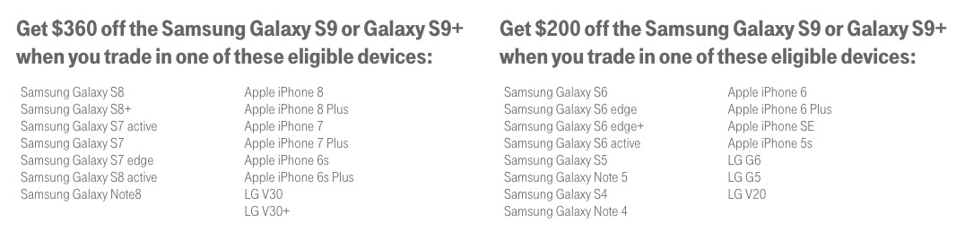 UPDATE: T-Mobile’s list of devices that will get you $360 off is pretty extensive. It covers most Samsung and iPhones from the past two years, as well as the LG V30. View it here.