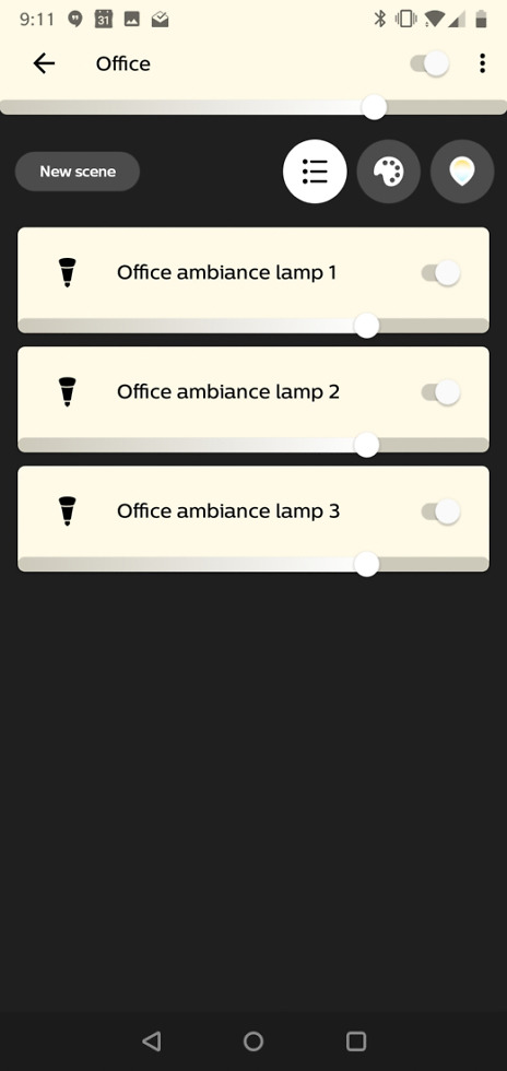 Upfront, you’ve got a bottom navigation bar now, as well as a more compact layout with updated on-off switches. There are “over 30” new scenes to choose from, a better way to control individual lights in a scene as well as the color you want, new scene creation tool, recently-used colors kept in history, and a general modernization of the app that makes simple light controls much more accessible.