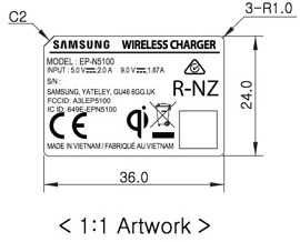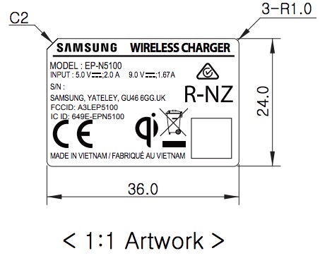 The previous generation wireless charger, in case you were curious, was model EP-N5100. That slightly older version was capable of 5V/2A and 9V/1.67A. You can see the two labels for each below.