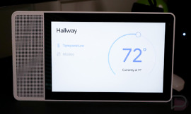 With that display, your smart home controls appear on the touch panel, so you can manually adjust your lights if you want. You can manually adjust your temperature too, tap on your favorite Spotify playlist, look at Google Photos albums, see the weather forecast, watch timers countdown, view traffic information, and Cast video to it rather than some place else.