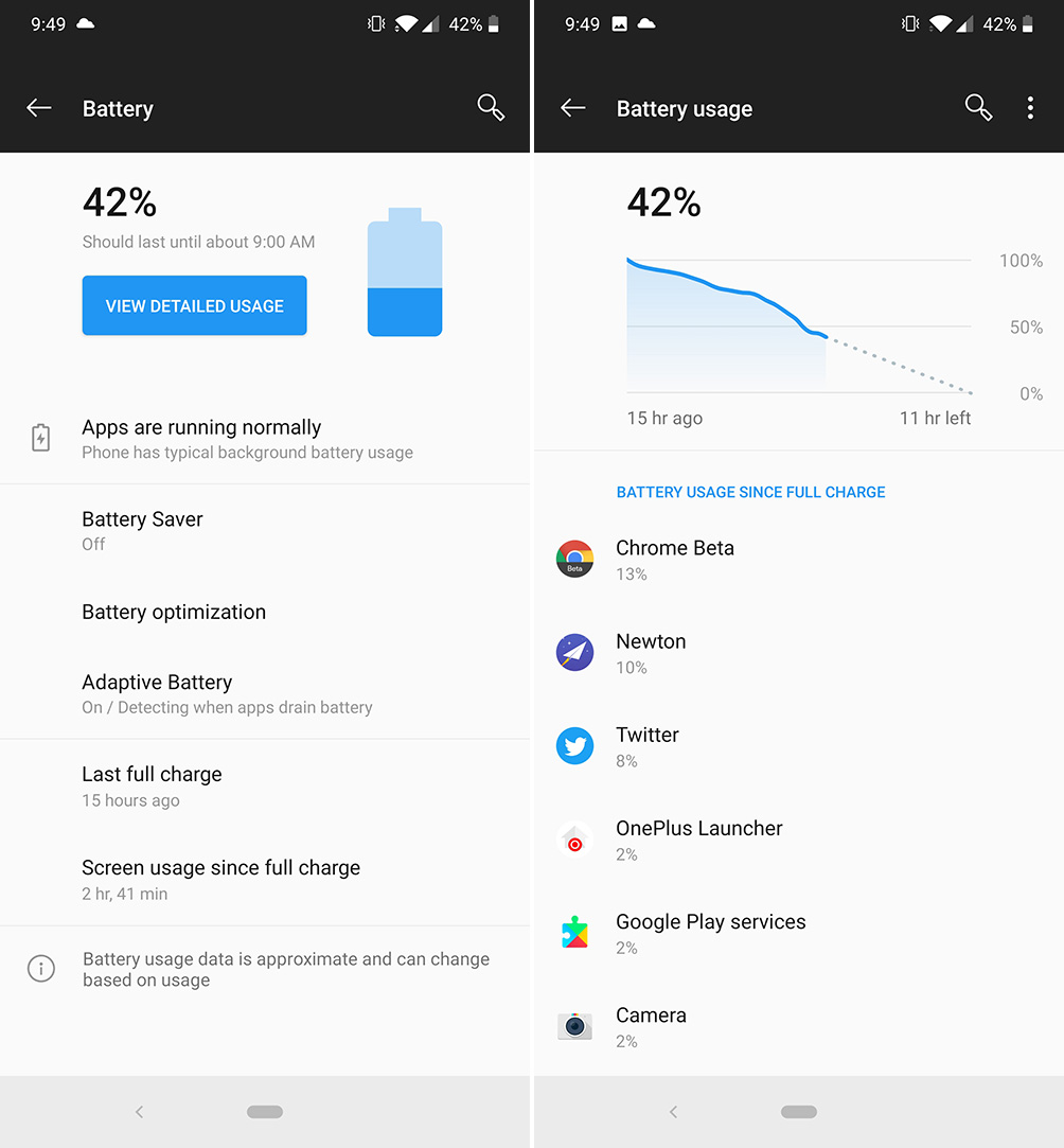 I’m not going to consider the OnePlus 7 Pro any sort of battery champ right now. During my testing, battery life was great for a couple of days and probably below average on others. Some days I’d get ready for bed with 40% battery left and 3 hours of screen on time, while others I’d have much less, like 25%, with similar usage. One charge I stretched the phone out to 38 hours with light use before looking for a charger and another day I needed a charger at 5:30PM.