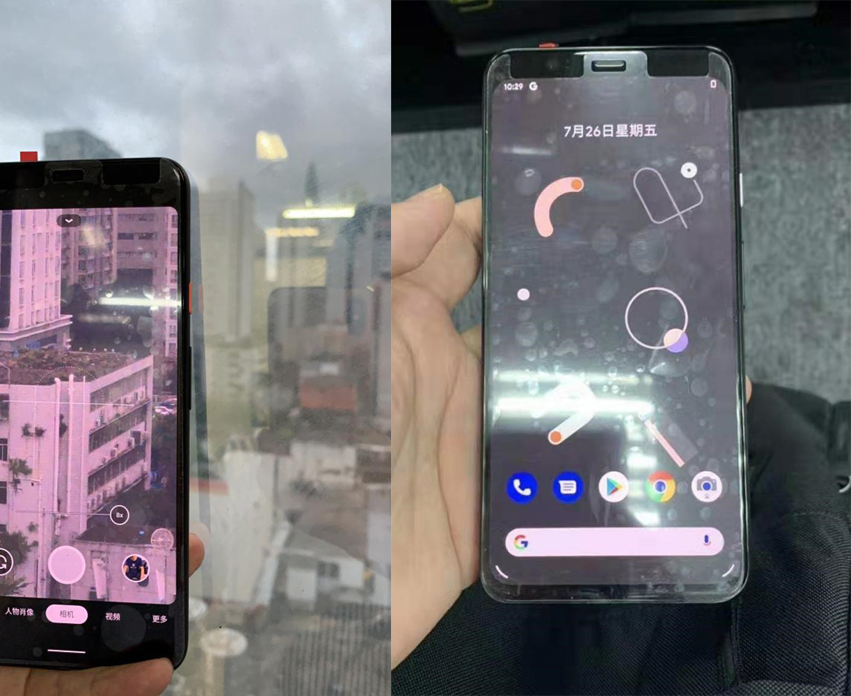 In addition to the white Pixel 4, we get a look at the camera UI of the Pixel 4, showing an 8X zoom. We also get a clear photo of the front of a Pixel 4 in black (notice the white power button) with screen protector cutouts for all of the sensors up top. There’s that bottom chin too, which I swear is getting bigger with each new leak.