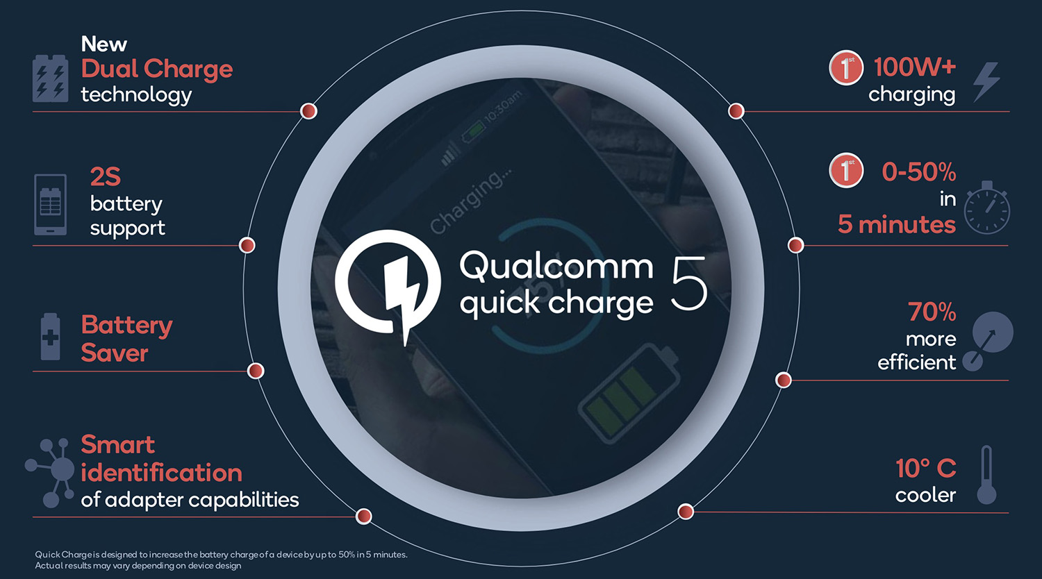 Quick Charge 5 will start showing up in devices in Q3 of this year through phones running Snapdragon 865 and Snapdragon 865+ chipsets. Future Snapdragon products will utilize it as well.