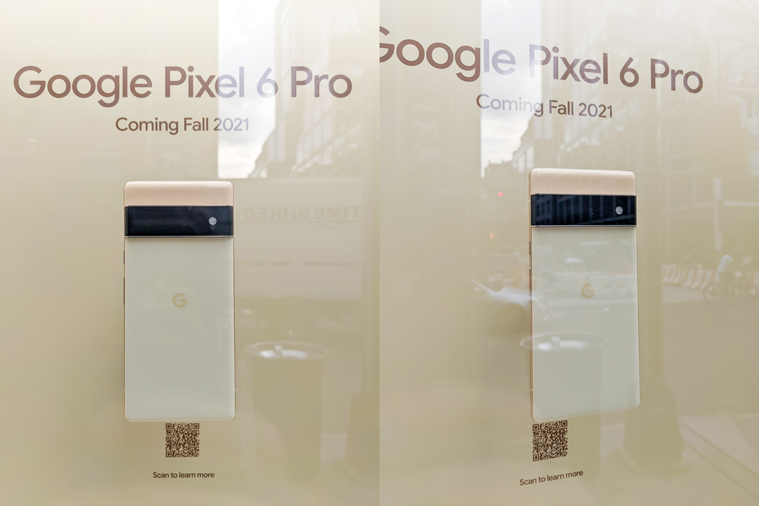 In the images here, you can see the gold Pixel 6 Pro under a banner with its name and a “Coming Fall 2021” note. There’s a QR code too, but it just takes you to the online Google Store’s Pixel 6 listing that has been live for several weeks.