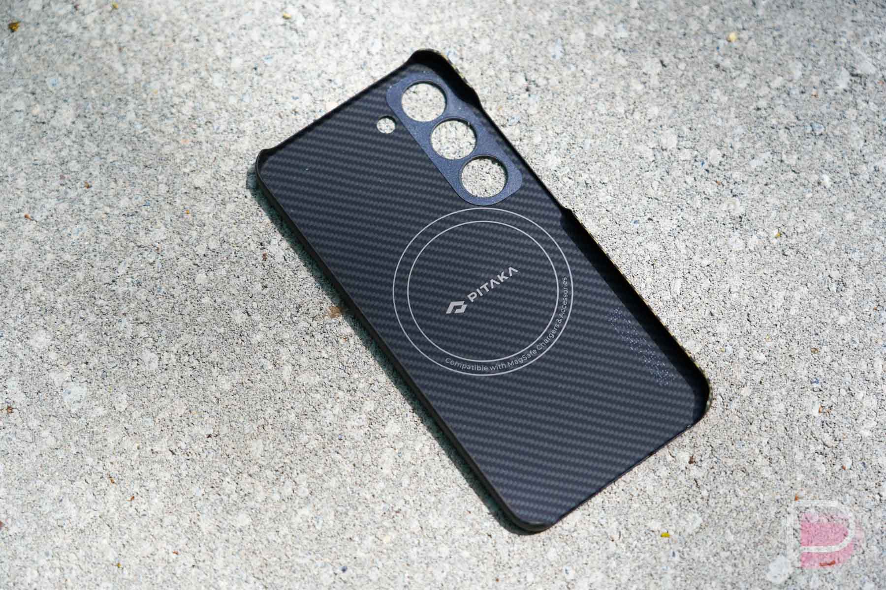 And then yeah, the MagSafe stuff is pretty great. For those not familiar, Pitaka cases feature a circular magnet on their inside to attach to MagSafe accessories like chargers. So all of those fancy iPhone chargers that suspend an iPhone in air and look super cool, can be used with a Galaxy S23 if it has a Pitaka case.