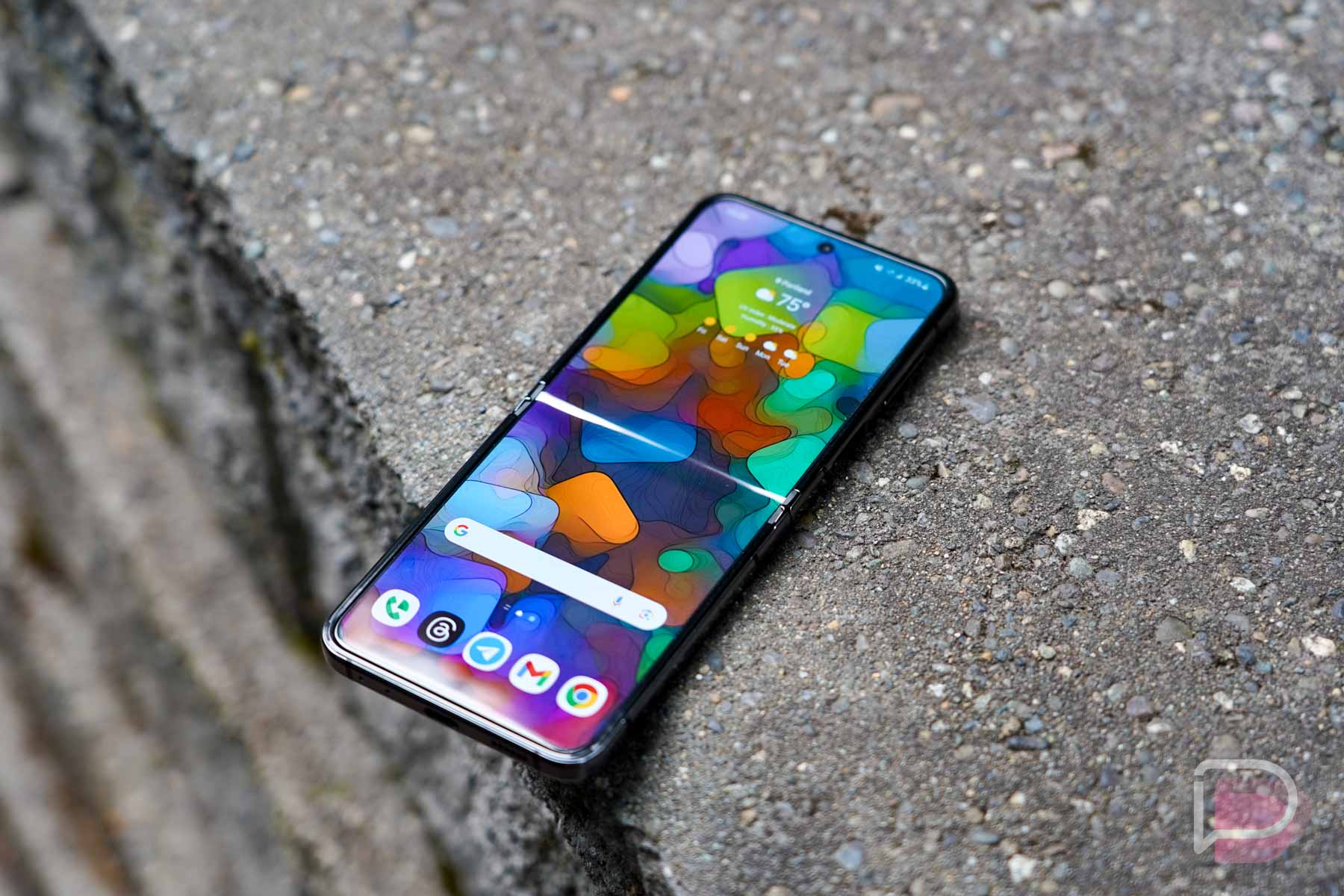 Where the Flip 5 shines is when the phone folds. I can’t begin to describe how handy it is to jump on a video chat and fold the phone to any angle so it can be set down while you chat, freeing up your hands. The same goes for taking photos with other people where you might not want to have to hold the camera.