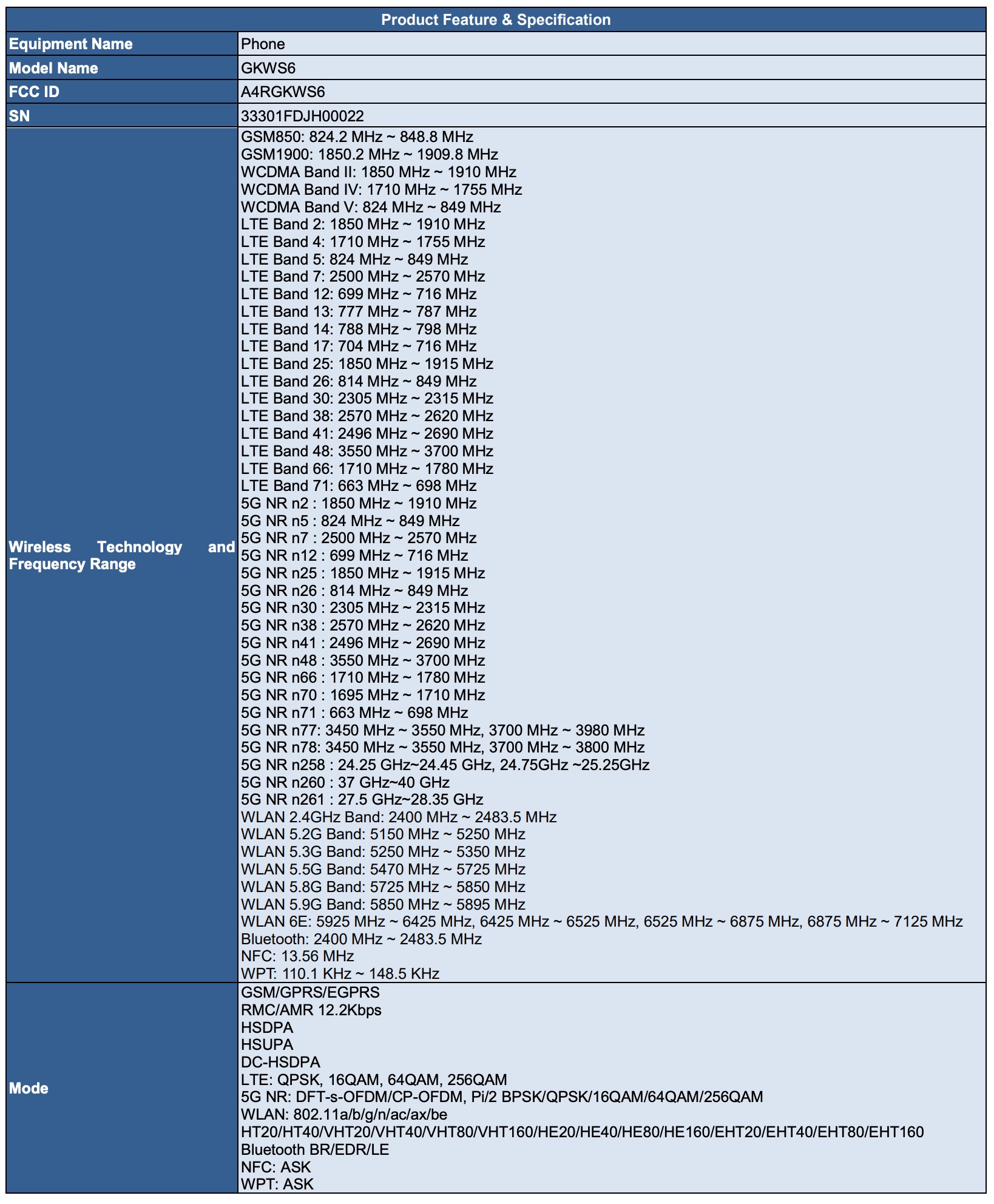 I say that because the fifth “phone” is FCC ID G1MNW. The biggest tell of this final G1MNW device is the included Ultra Wideband (UWB) support, which Google has only ever included in its Pro models of phones, so this is very likely to be the Pixel 8 Pro. As far as I can tell, it is not referenced with any other devices that hit the FCC today. It also has 5G mmW support.