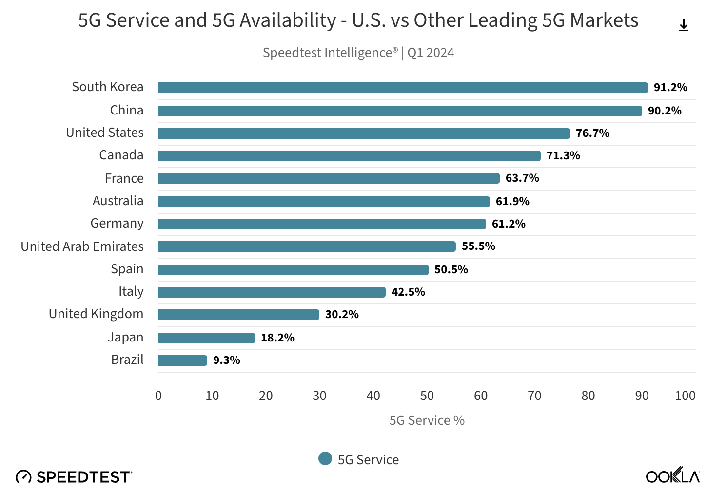 Thanks to these improvements, the US is starting to actually show up pretty high on global rankings for service and availability, which is right where we want to be. Keep in mind, the continental US is a large area to cover. When looking at the below graph, remember that South Korea is a country of 38,000 square miles, while the US is roughly 4 million.