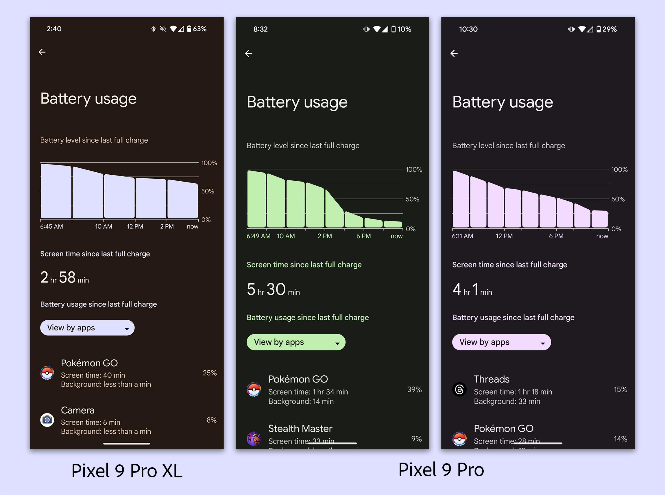 And then a Pixel 9 Pro review unit showed up to let me truly get to work. On one of my first charges, I was at 3.5 hours of screen on time and going to bed with 21%. That’s not anything special, but it’s only gotten better with each day. On Saturday, Pokemon Go was having a community day, where my son and I go walk for a couple of hours in the sun with Pokemon Go running (and on a data connection only). We took both Pixel 9 Pro phones with us to absolutely crush their charges. As it turns out, even that situation couldn’t bring the Pixel 9 Pro down. The day finished with 5.5 hours of screen on time (most of which was on LTE or 5G), another 30 minutes of a Stealth Master session from my son, and then the rest of my daily grind. I had 10% battery in the evening, and that’s just incredible stuff.