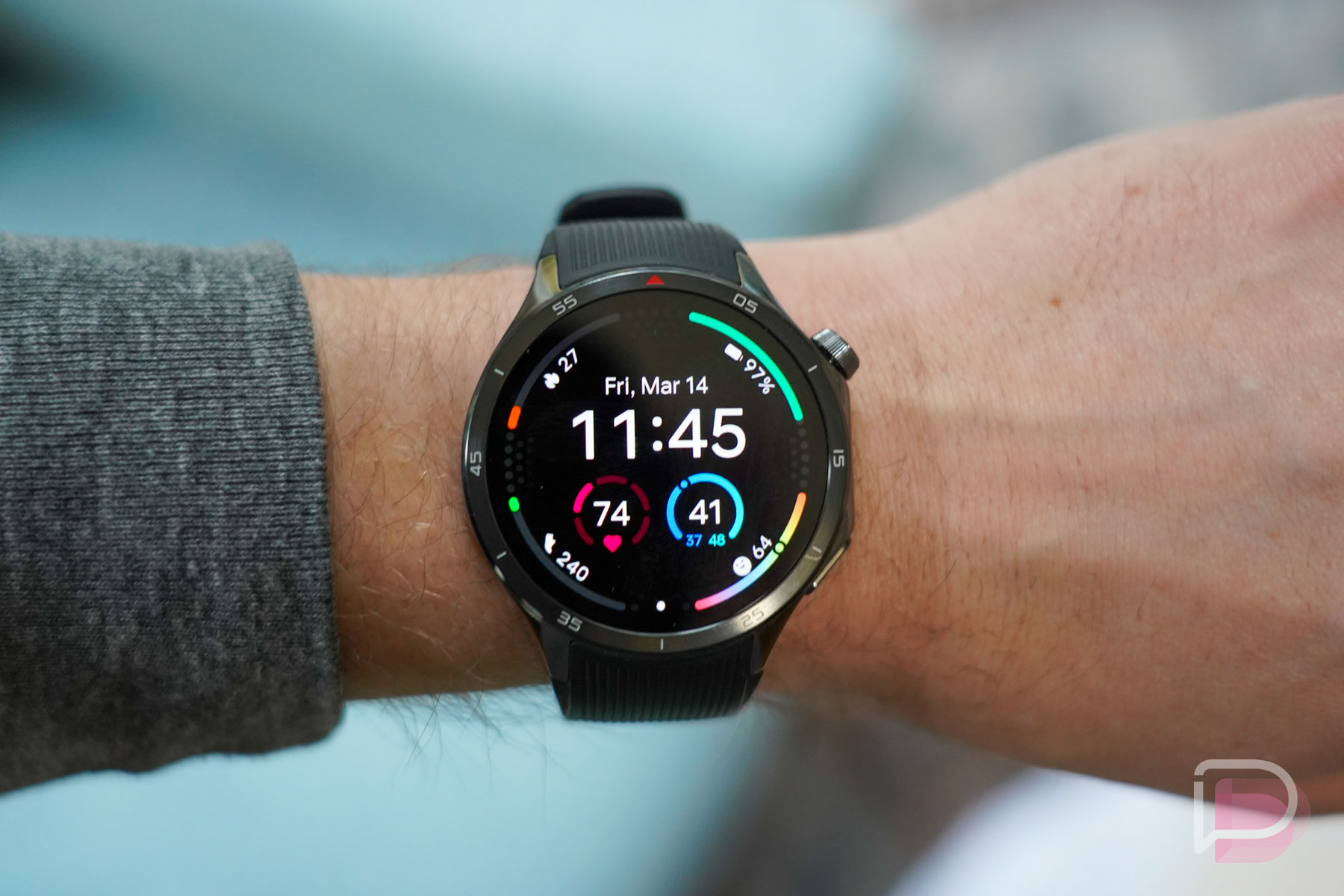 Size in mind, I was worried it would be heavy, but it’s not that heavy. At 81g with the band, it’s certainly well above the Pixel Watch 3 and probably slightly heavier than the Galaxy Watch Ultra. Again, though, it wears nicer than the size and weight suggest. Maybe it’s the well-made included band that fits so nicely around my wrist or that I’m used to the footprint of it at this point, after all these weeks of wearing it, but my wrist hasn’t had fatigue from it, I’m not catching it on doorways, and it hasn’t bothered me while sleeping with it on every night.