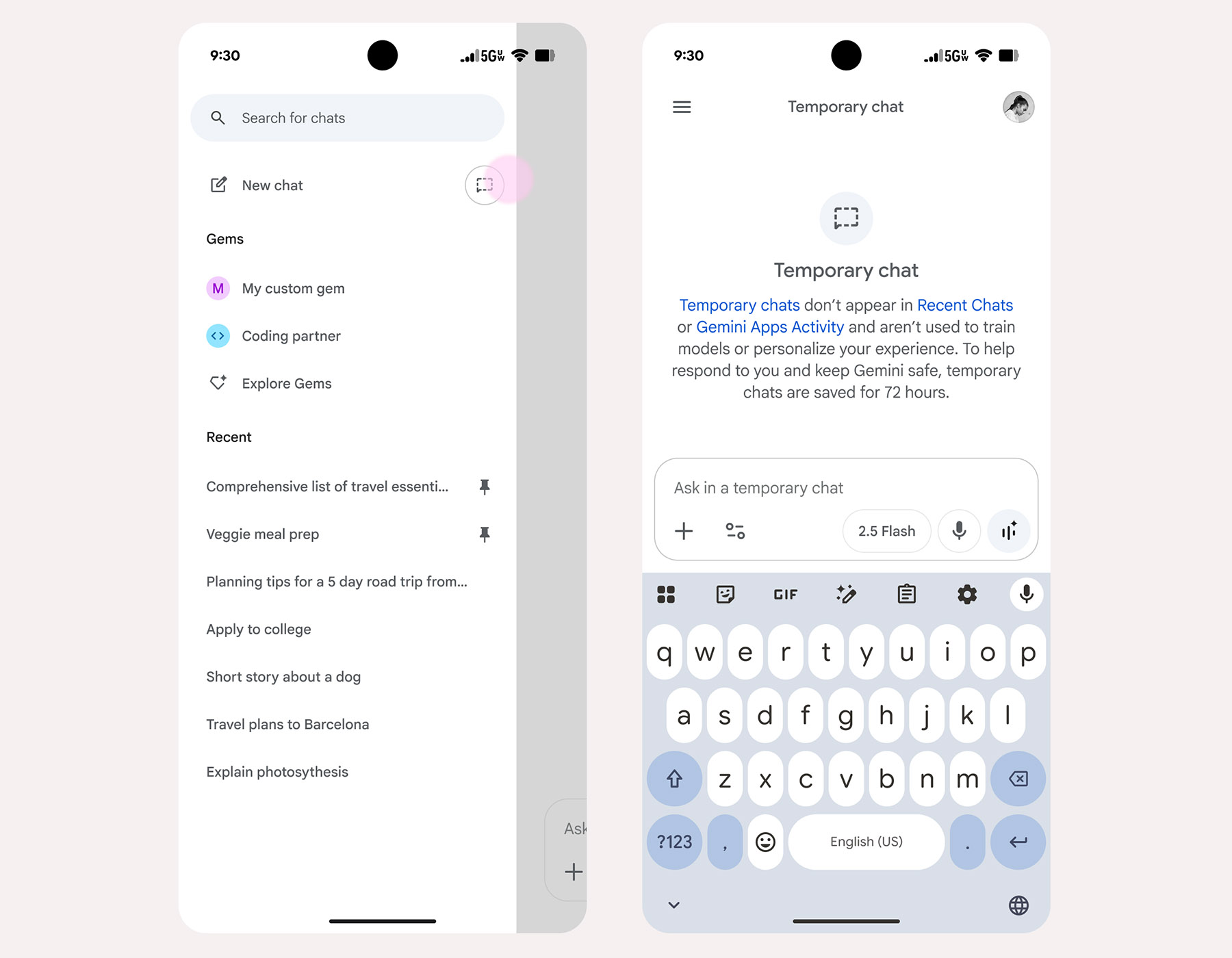 Gemini App Adds Temporary Chats as Privacy Feature, More Personalized Responses Too