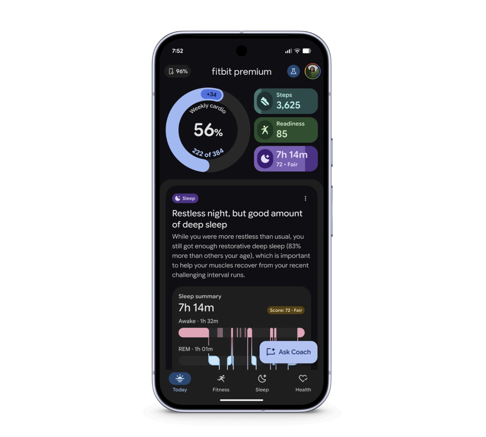 What does that look like? Well, it starts with that redesigned Fitbit app that was built to showcase this coach. But to get started, you’ll have to tell it what your goals and preferences are, so that it can build a custom fitness plan for you. It can then adjust workout plans based on real-time data and daily insights, like your daily readiness score. Google even suggests you talk to the AI coach (there’s an “Ask Coach” button) when you get an injury, so that it can further adjust plans or tweak workouts around it.